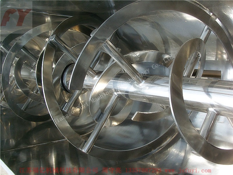 3、在不同物料的混合要求下(特殊物料必須每次混合需清洗),采用不同螺旋帶結(jié)構(gòu),可加熱、干燥的夾套型。
