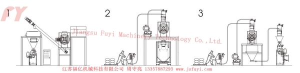 2:采用真空上料方式,地面投料,混合出料后采用噸帶包裝機(jī);