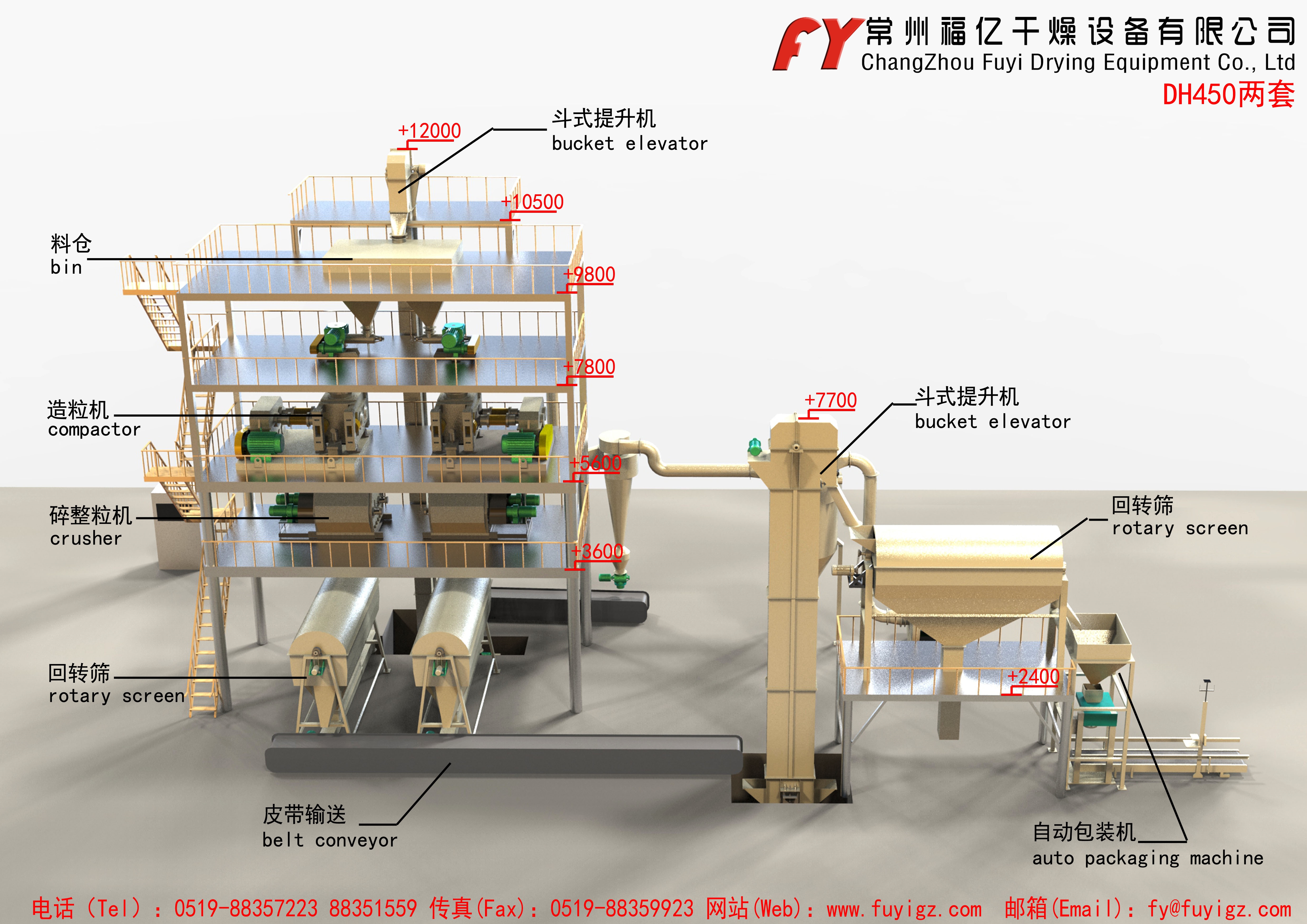 以DH850造粒機為核心的顆粒硫酸鉀生產線為例(年產30萬噸大顆粒)