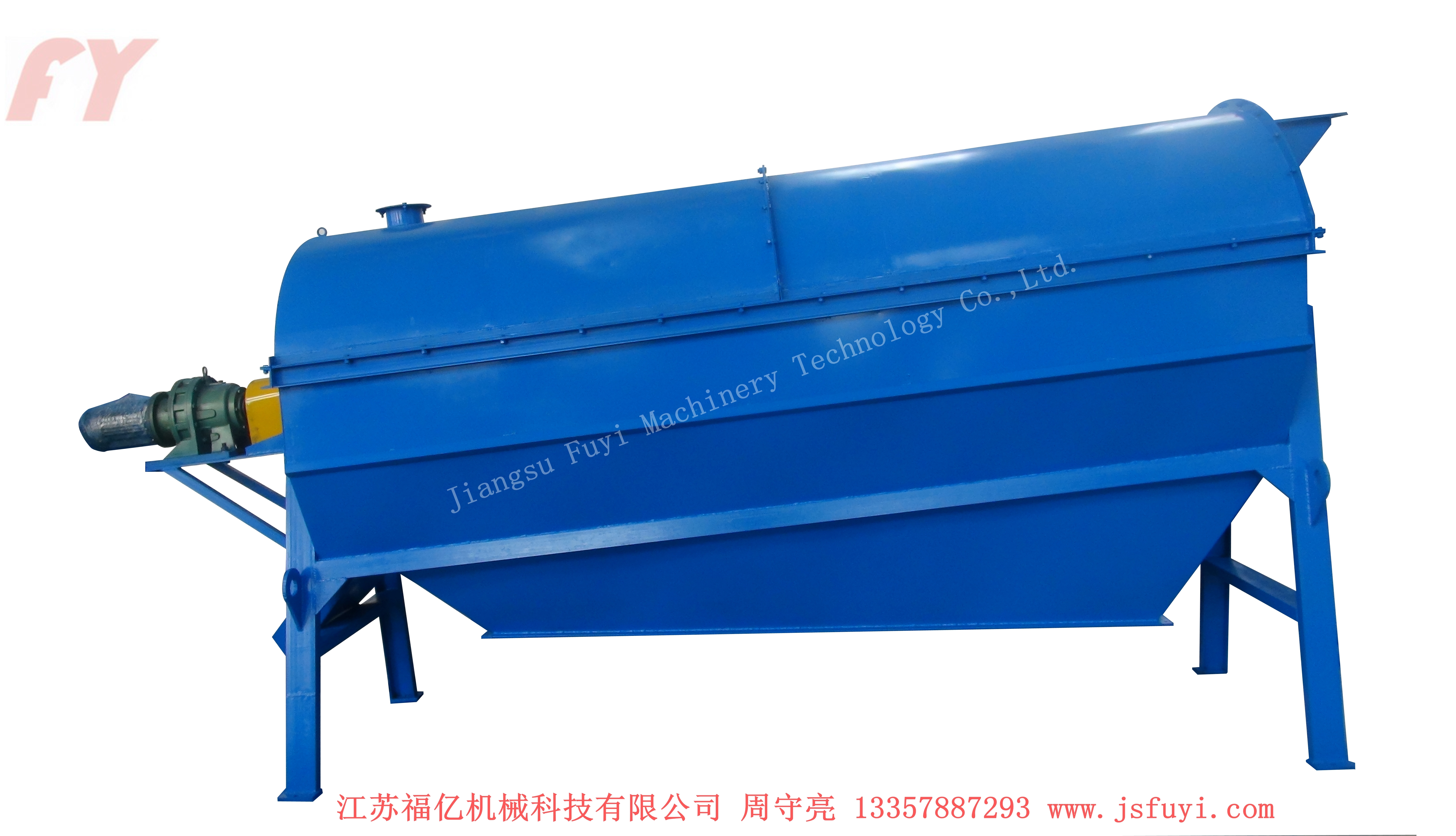 HZS系列回轉篩主要由電機、減速機、滾筒裝置、機架等機構組成。滾筒裝置傾斜布置,電動機經減速機與滾筒機構連接在一起,驅動滾筒機構繞其軸線轉動。當物料進入滾筒裝置后,由于滾筒裝置的傾角與轉動,使合格物料(篩下產品)經滾筒外圓的篩網排出,不合格物料(篩上產品)經滾筒末端排出。
