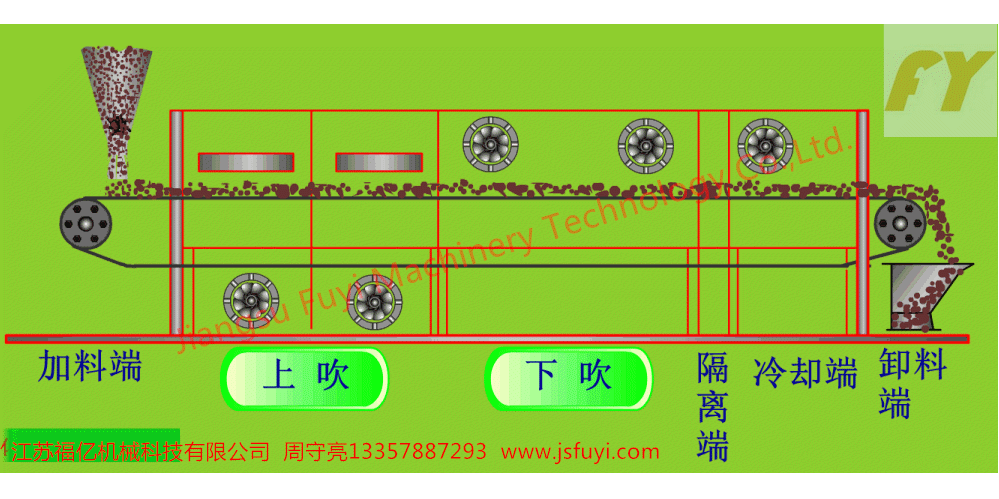 工作原理: 物料由加料器均勻地鋪在網(wǎng)帶上,網(wǎng)帶一般采用12-60目不銹鋼絲網(wǎng),由傳動裝置拖動在干燥機(jī)內(nèi)移動。干燥機(jī)由若干單元組成,每一單元熱風(fēng)獨(dú)立循環(huán),部分尾氣由專門排濕風(fēng)機(jī)排出,廢氣由調(diào)節(jié)閥控制,熱氣由下往上或由上往下穿過鋪滿物料的網(wǎng)帶完成熱量與質(zhì)量傳遞的進(jìn)程,帶走物料水份。網(wǎng)帶緩慢移動,運(yùn)行速度可根據(jù)物料溫度自由調(diào)節(jié),干燥后的成品連續(xù)落入收料器中。上下循環(huán)單元根據(jù)用戶需要可靈活配備,單元數(shù)量亦可根據(jù)需要選取。